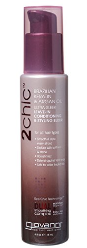 Giovanni 2Chic Ultra Sleek Leave-In Conditioning & Styling Elixir Brazilian Keratin & Argan Oil-4 Oz
