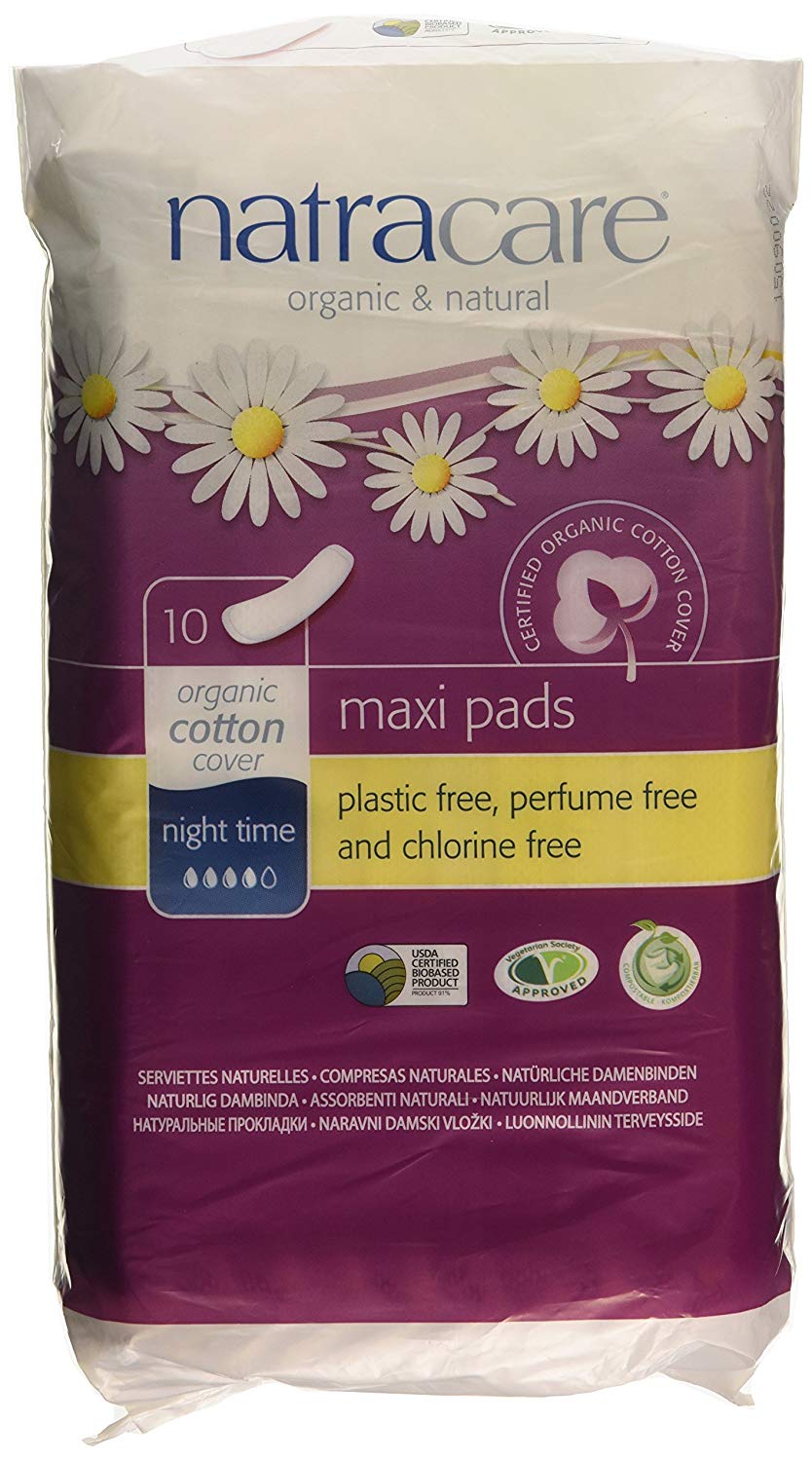 Natra Care Organic Cotton Cover Maxi Pads Night Time-10 Pads