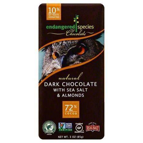 Endangered Species Dark Chocolate, with Sea Salt & Almonds, 72% Cocoa - 3 Ounces