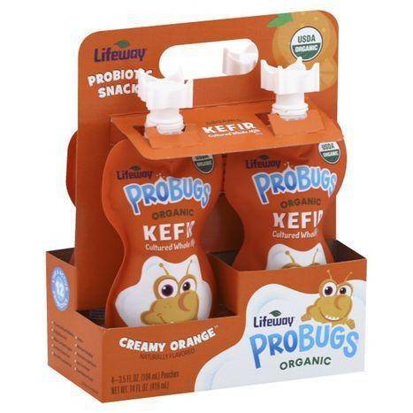 Lifeway ProBugs Kefir, Organic, Creamy Orange - 4 Each