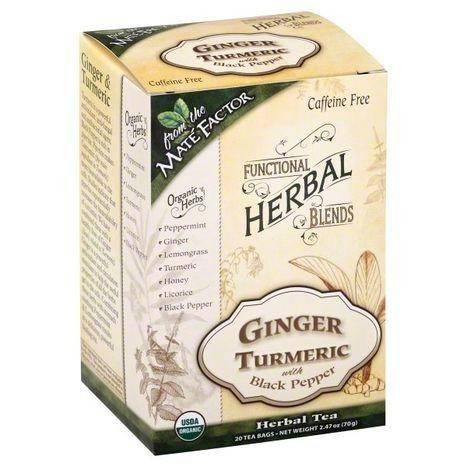 Mate Factor Functional Herbal Blends Herbal Tea, Organic, Ginger Turmeric, Caffeine Free, Bags - 20 Each