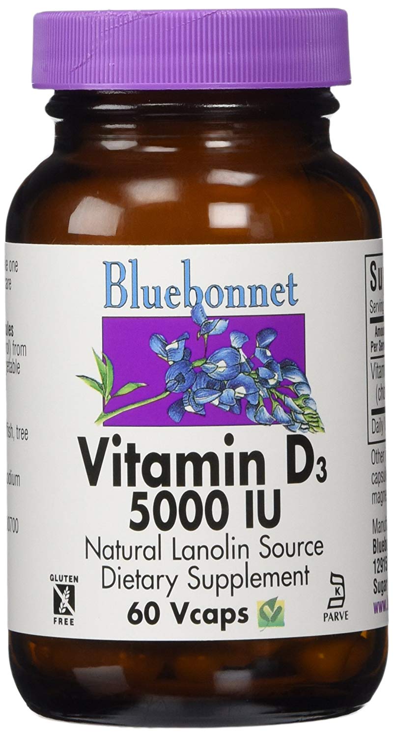 Bluebonnet Vitamin D3 5000 IU Natural Lanolin Source-60 Vegetable Capsules