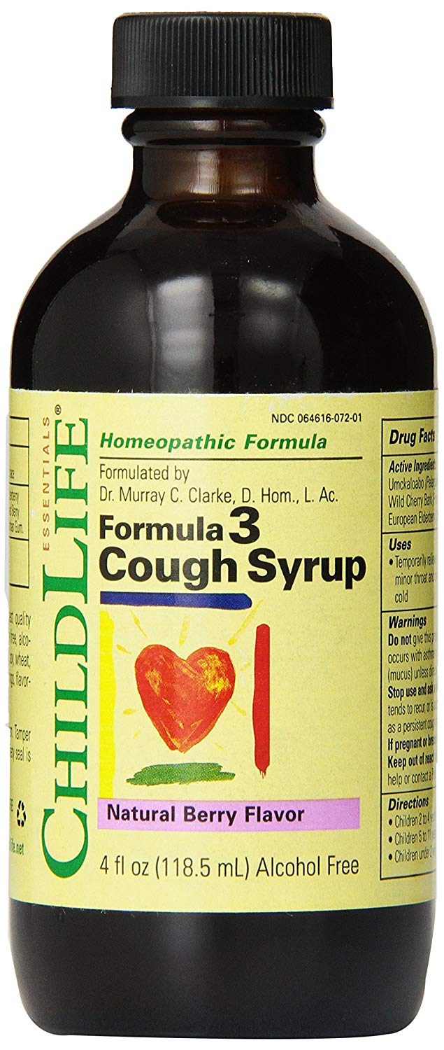 Childlife Homeopathic Formula 3 Cough Syrup Combines The 3 Most Effective And Well Researched Homeopathic Extracts For Safely And Effectively Addressing All Types of Children's Coughs. Suggested Use -Children 2-4 Yrs - 1/2 Teaspoon Every 3 Hrs, Or As Needed. Children 5-11 Yrs - 1 Teaspoon Every 3 Hrs, Or As Needed. Children Under 2 Yrs of Age - Consult Your Healthcare Practitioner. ? Shake Well Before Use, Keep Refrigerated After Opening ,Give Directly Or Mix With Your Child?S Favorite Drink.