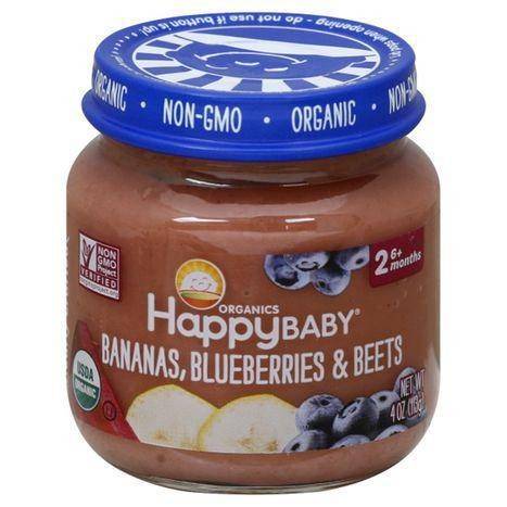 Happy Baby Organics Baby Food, Organic, Bananas, Blueberries & Beets, Stage 2 (6+ Months) - 4 Ounces