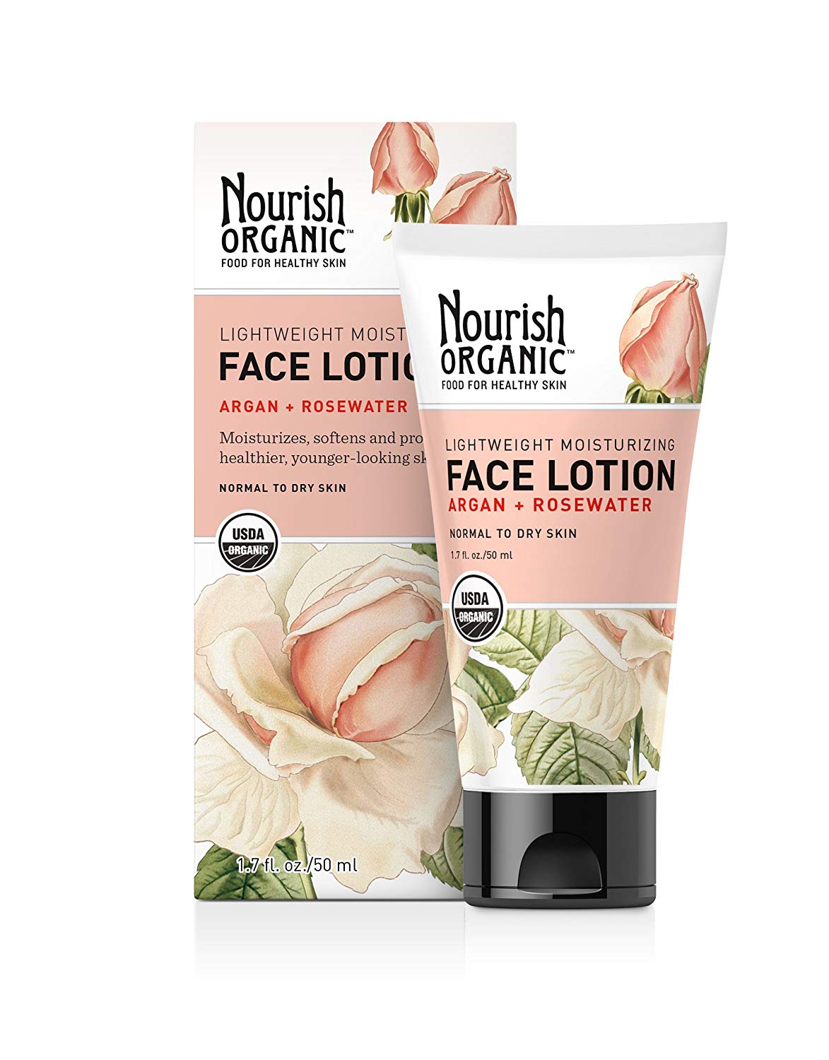 Nourish Organic Light Weight Moisturizing Face Lotion Argan & Rosewater-1.7 Oz