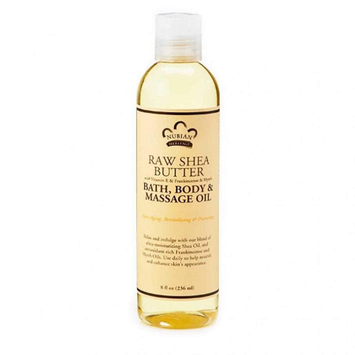 Nubian Heritage Raw Shea Butter With Vitamin E, Frankincense & Myrrh Bath, Body & Massage Oil-8 Oz