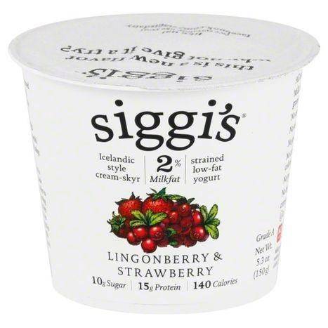 Siggis Yogurt, Low-Fat, Icelandic Style Cream-Skyr, Strained, Lingonberry & Strawberry - 5.3 Ounces