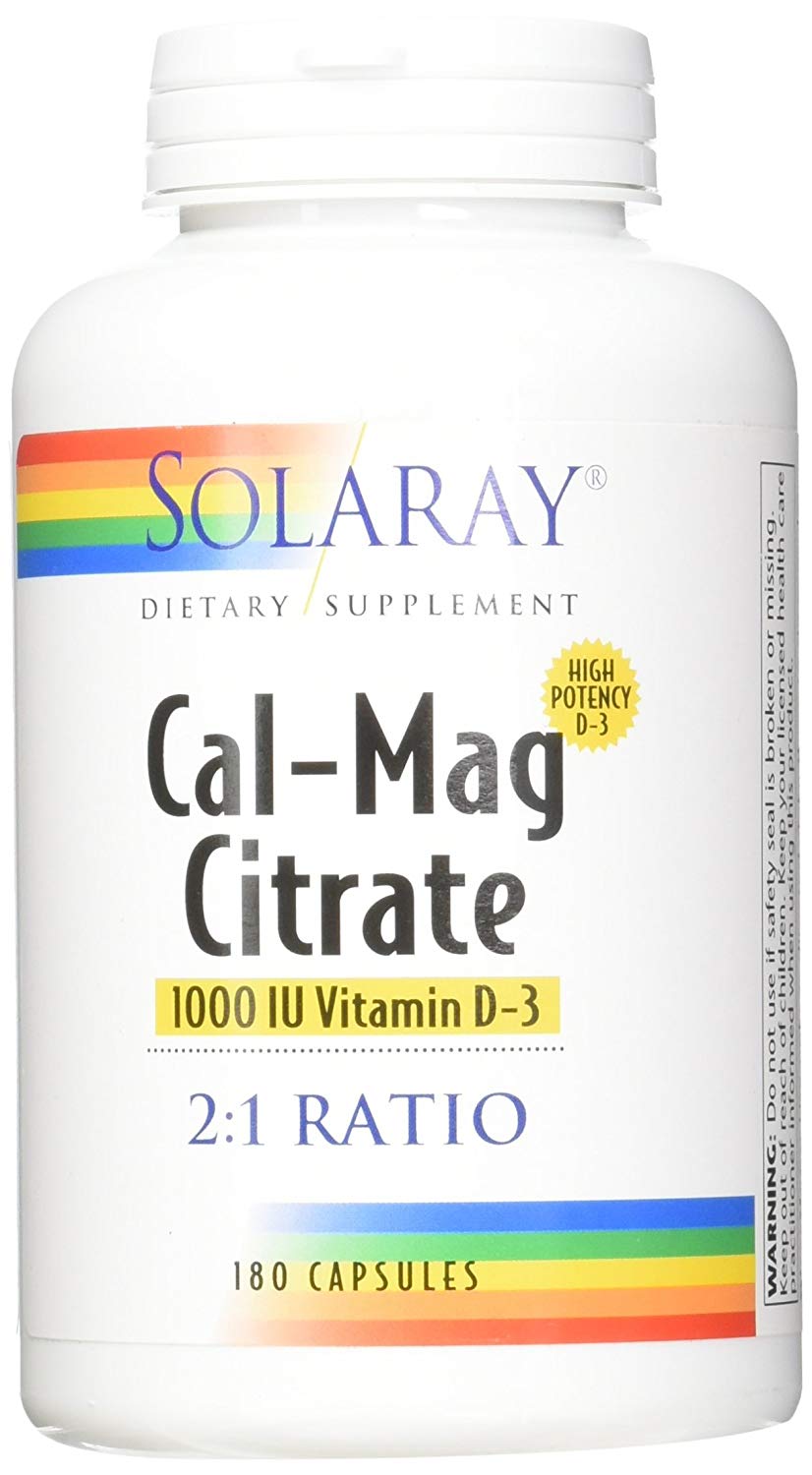 Solaray Cal-Mag Citrate 2:1 Ratio & Vitamin D3 1000 IU-180 Capsules